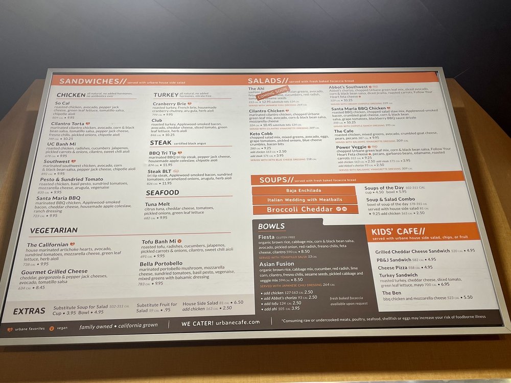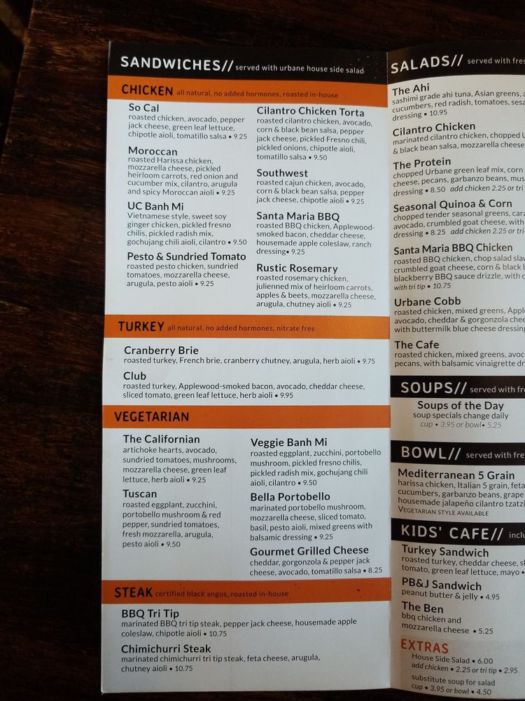 Introducing the menu at Urbane Cafe, located in Northridge, CA, is a delightful experience for those looking for New American, salads, and sandwiches. With a plethora of utilities including delivery, takeout, vegan options, and even cryptocurrency payments, Urbane Cafe caters to a diverse range of customers. The reviews rave about the delicious food and excellent service. Highlights include the Baja bowl, chimichurri steak sandwich, and tofu banh mi, all praised for their fresh ingredients and unique flavors. Whether you're in the mood for a healthy option like the Mediterranean bowl or a classic sandwich like the Californian, Urbane Cafe has something for everyone. Don't miss out on this gem of a restaurant with its welcoming staff and satisfying menu offerings.
